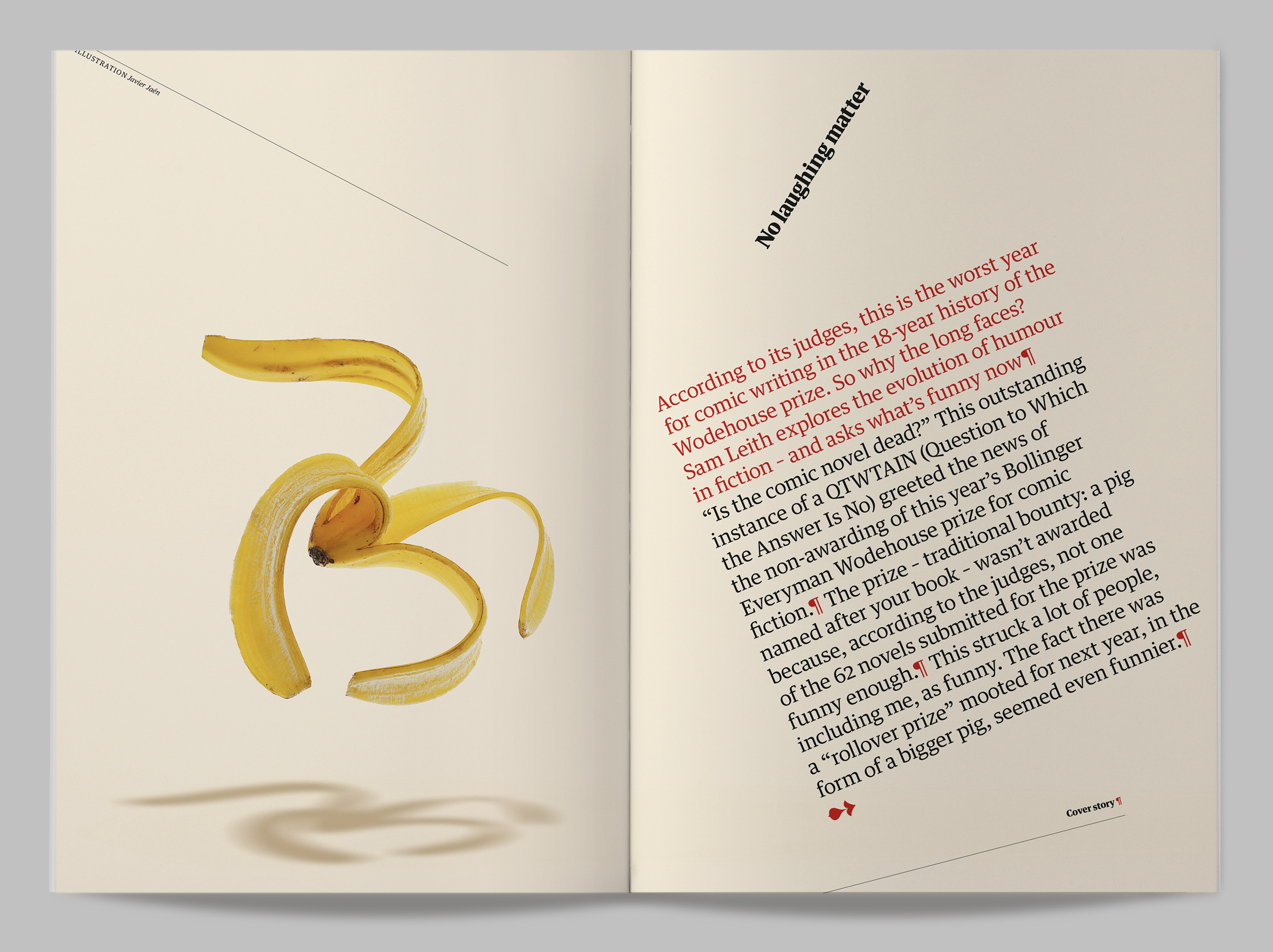 The Guardian. Review. Has fiction lost its sense of humor? Text by Sam Leith. Art Direction by Bruno Haward.